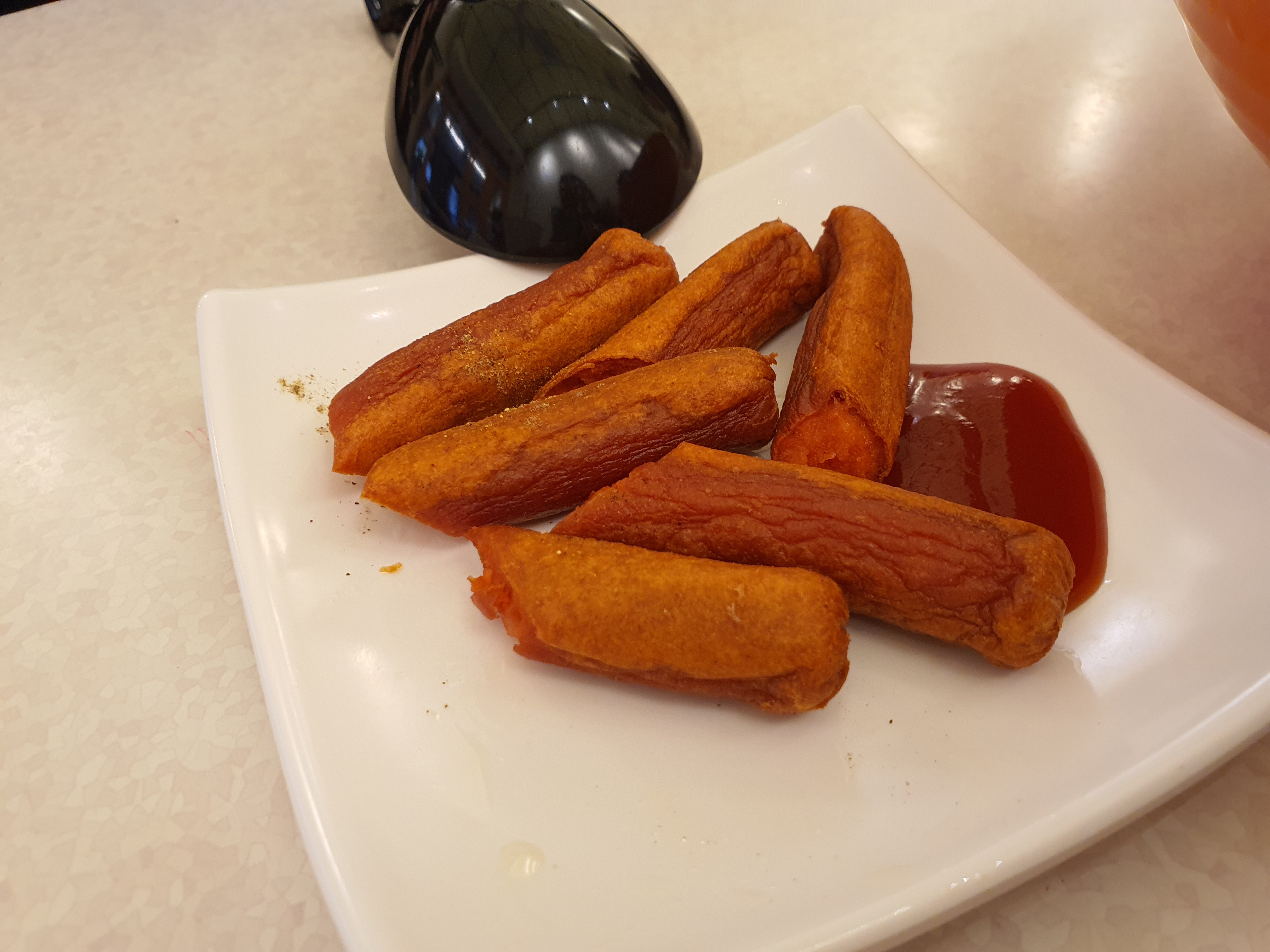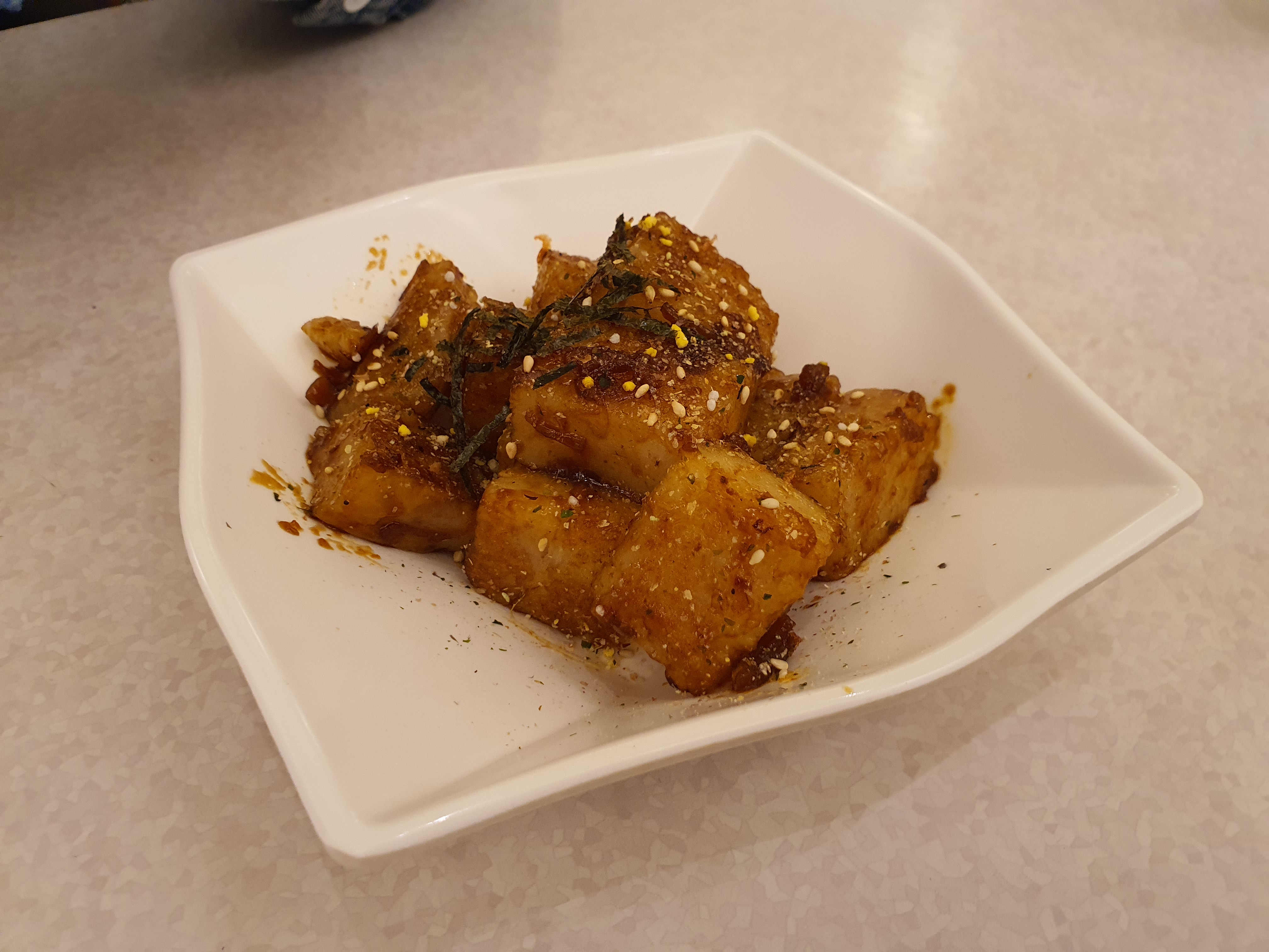 떡과 두부 사이의 식감..?에 양념 묻힌 맛이다