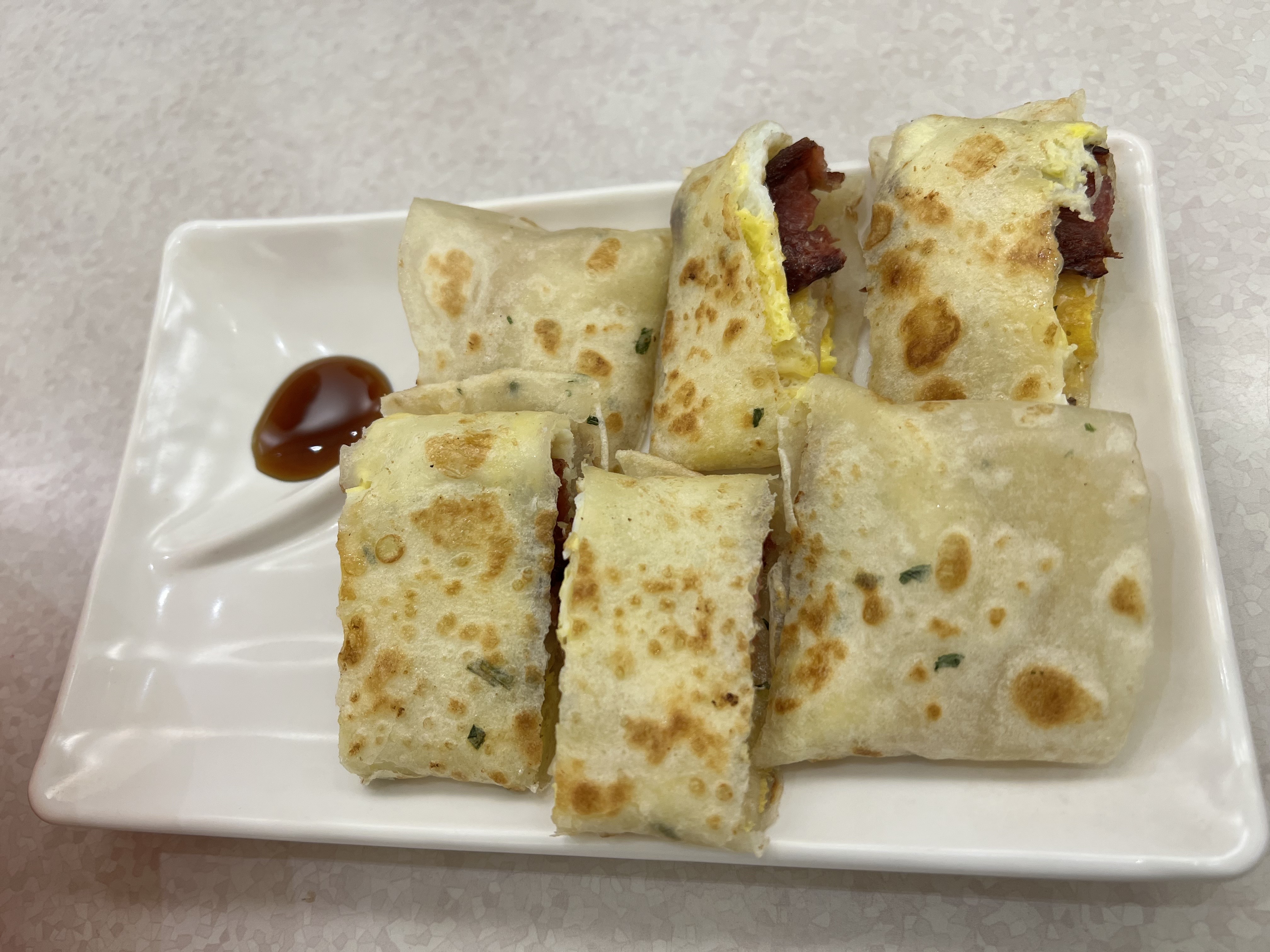 설명하자면 약간 쫀뜩한 또띠아로 만든 에그롤..?