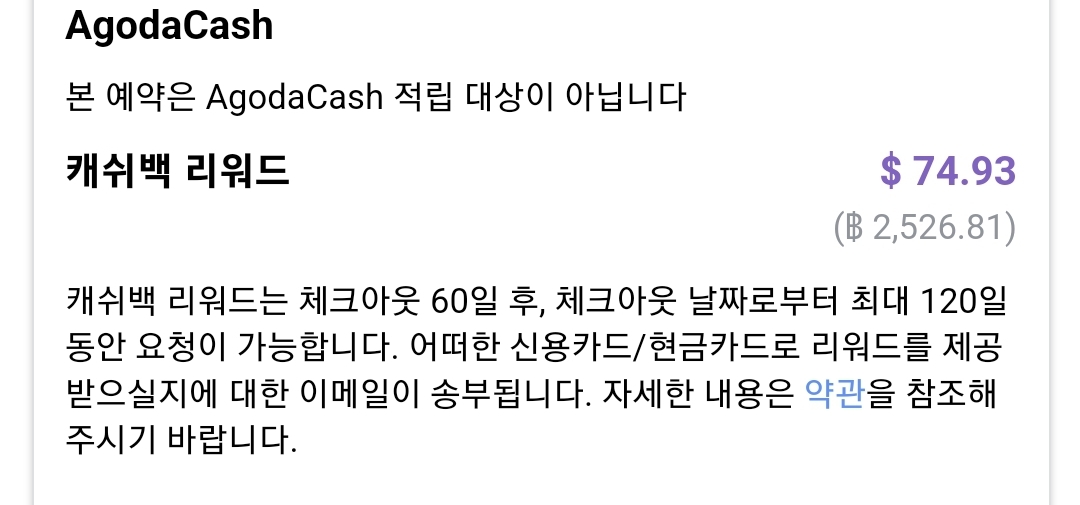 아고다 캐쉬백은 체크아웃하고 2개월 후부터 신청해서